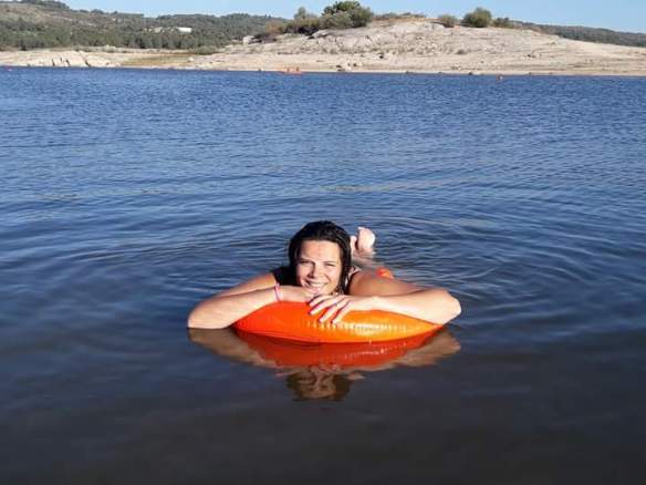 Este ano decidi meter a Madalena na natação, e por arrasto lá tenho que ir eu também meter o cú de molho! A minha decisão prendeu-se com o facto dela ter adquirido um medo inexplicável à água. Quando vamos à praia ela brinca com água, mas no seu balde e na sua poça, longe das ondas do mar. Arrisca a ir molhar os pés e chapinhar mas nunca foi por livre vontade molhar mais que os tornozelos. As vezes que eu tentei levá-la ao colo para dentro de água mesmo sem ela tocar na água a gritaria era de tal forma que acabei por desistir de o fazer. Na praia fluvial a história é parecida mas o medo é menor e ela já se arrisca a sentar-se dentro de água e chega a ser uma tarefa quase impossível tirá-la de lá ao fim do dia.