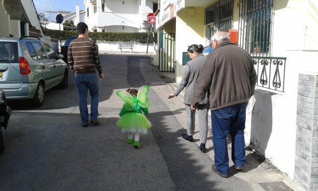 A M. brincou muito, adorou andar mascarada, cada dia de uma forma diferente, Minnie, Fada Sininho e Princesa. Nada de fatos super elaborados, mas que serviram bem o propósito. Cheira-me que ainda vamos dar uso às saias e às coroas que arranjámos para o Carnaval.